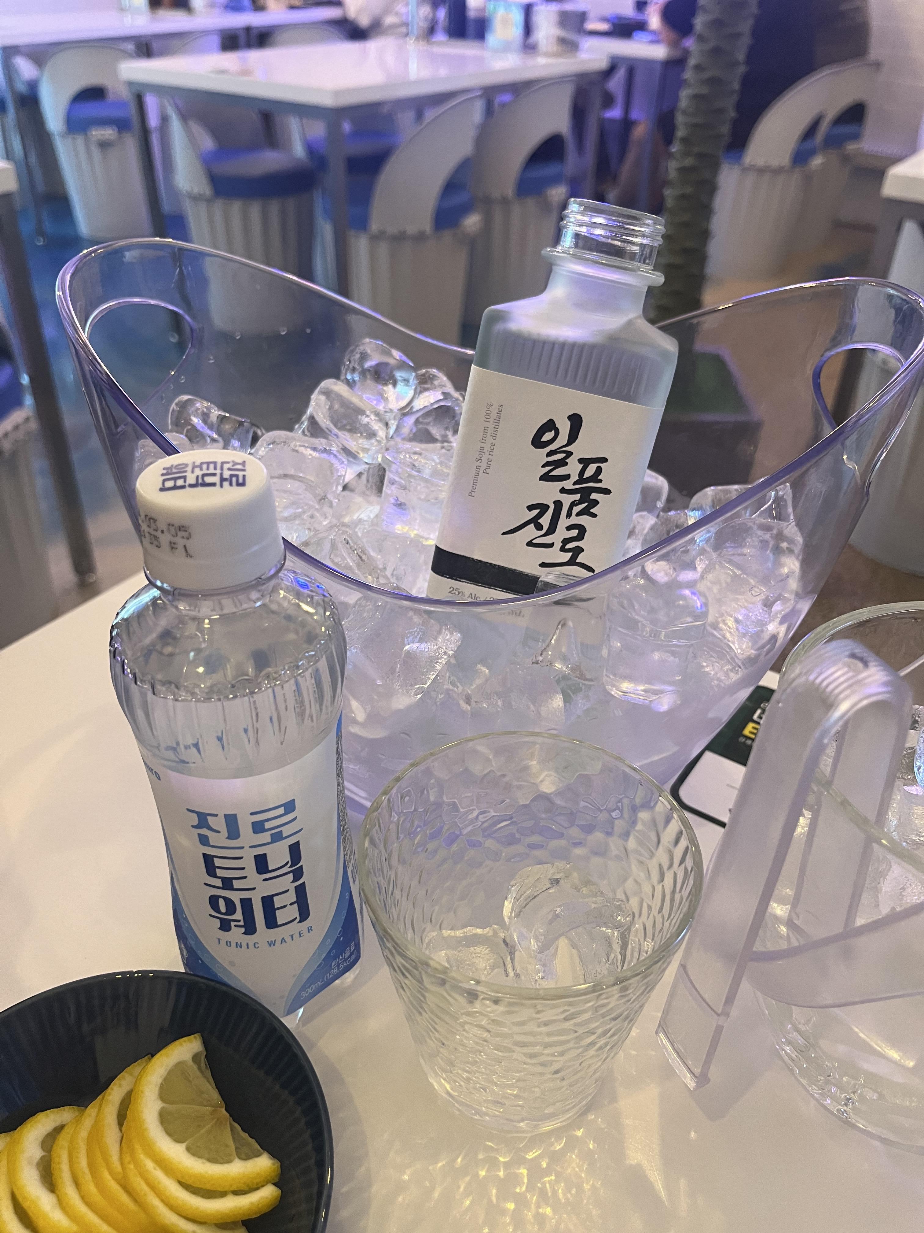 일품진로를 주문하고 토닉에 레몬 얹어서 맛있게 한잔 타 보았습니당ㅎㅎㅎ 크~