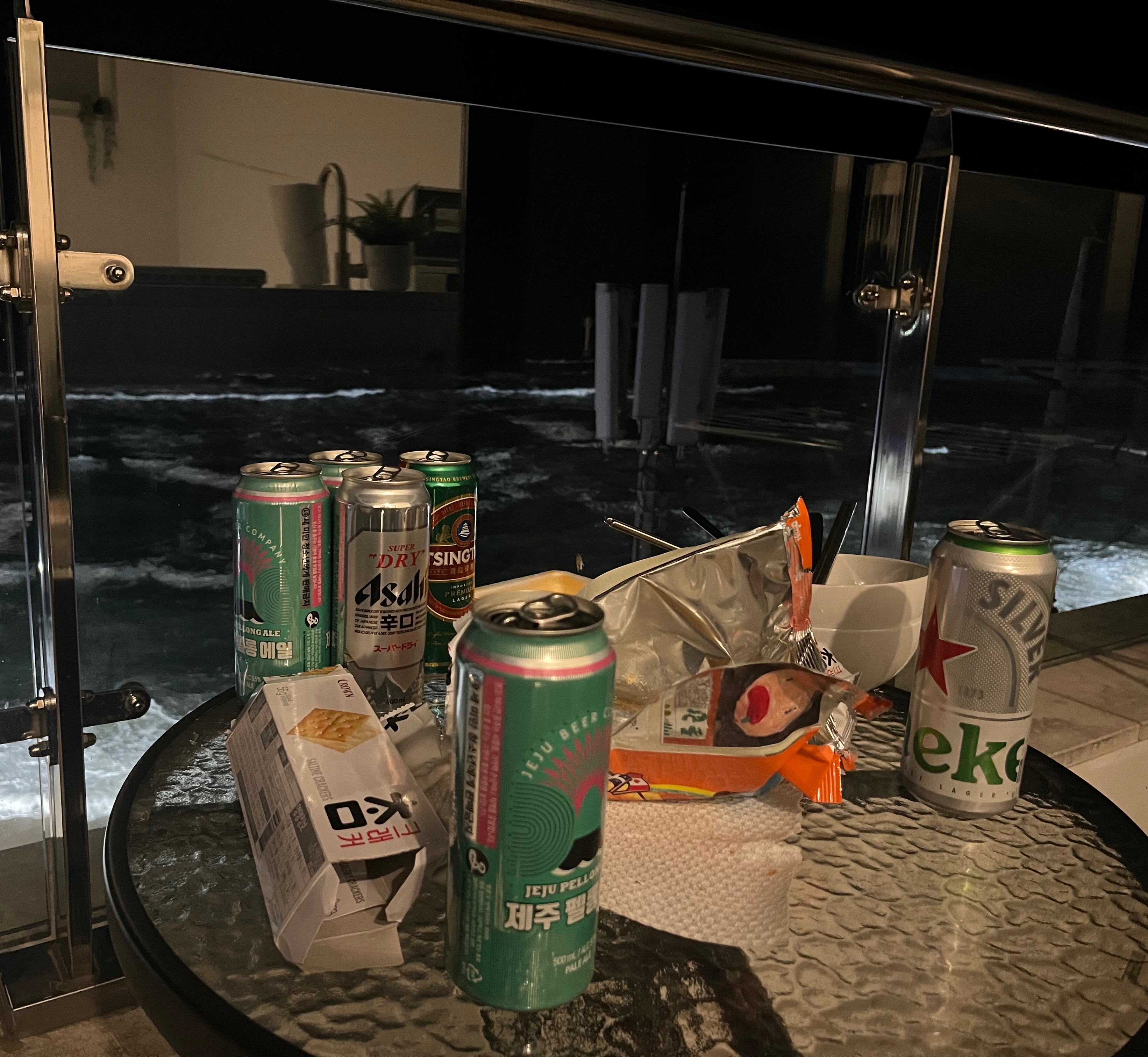 밤바다를 보며 맥주를 한잔에 진솔한 대화도 나누는 시간을 보냈어요~